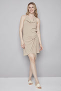 Jupe courte évasée de style portefeuille avec bandes de tissu à nouer sur le côté. Fermeture éclair invisible derrière. Tissu à effet froissé extensible.