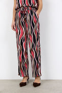 Pantalon à jambes larges de style palazzo. Large bande élastique à la taille avec lacet. Poche sur les côtés. Tissu légèrement extensible. Motif de torsades multicolores. Peut rétrécir au lavage. 100% lenzing ecovero viscose.