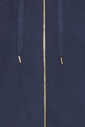 Chandail de style coton ouaté à capuchon avec fermeture éclair et lacet. Poche sur les côtés. Coupe ample. Rivets, embouts et fermeture éclair en métal doré. Tissu extensible offrant un léger relief.