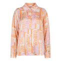Chemisier à manches longues. Col classique. Boutons à effet coquillage. Plus long derrière que devant. Tissu soyeux non extensible. Imprimé animal en blocs.