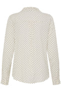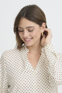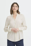 Chemiser à manches longues. Col montant froncé avec ouverture en «V». Bas arrondi. Tissu doux non-extensible. Motif en forme de triangle composé de petits cœurs.