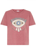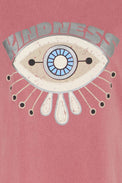 T-shirt à manches courtes. Encolure ronde. Coupe droite. Graphique abstrait représentant un œil. Écriture offrant une légère brillance de couleur argent «Kindness». Jersey extensible à effet délavé. Peut rétrécir au lavage.