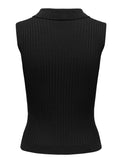 Top sans manches de style polo. Col classique. Coupe ajustée. Fermeture éclair en métal argent. Bordure en tricot fin au col, au bas et à l'emmanchure. Tissu côtelé doux et extensible.