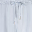 Pantalon à jambes larges. Taille régulière avec bande élastique et lacet. Poche sur les côtés. Poches plaquées derrière. Tissu légèrement ondulé non-extensible.