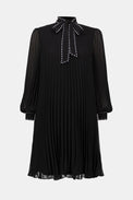 Pensée pour des mouvements gracieux, cette robe trapèze en mousseline plissée est idéale pour chaque tourbillon et balancement. Une cravate ornée de clous apporte une touche de sophistication, tandis que les longues manches bouffantes soulignent son charme intemporel. Tombant élégamment jusqu'au genou, cette robe est un choix magnifique pour toute occasion spéciale.