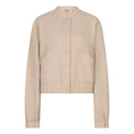 Bomber à manches longues. Col mao. Boutons-pression ton sur ton. Coupe courte. Large bordure élastique au bas et au bout des manches. Découpes diagonales devant. Poches plaquées au bas. Tissu extensible. Rayures 2 tons.