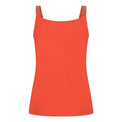 Camisole ajustée à bretelles larges. Encolure en «U». Bretelles en élastique avec insertion de fils métalliques ton sur ton. Tissu extensible.