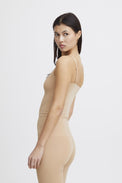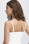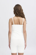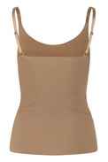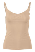 Camisole de base à fines bretelles ajustables offrant une légère brillance. Encolure en «U». Tissu doux et extensible sans coutures.
