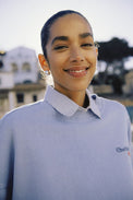 Chandail en coton ouaté à manches longues. Encolure ronde. Bordure côtelée au col, au bas et au bout des manches. Découpes sur les côtés Tissu extensible. Peut rétrécir au lavage.