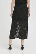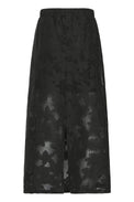 Jupe longue de type «pull-on». Bande élastique à la taille. Doublure unie plus courte. Fente au centre derrière. Filet extensible recouvert de feuillage.