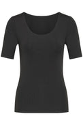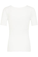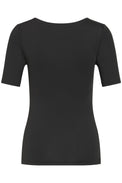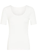 T-shirt ajusté à manches courte. Encolure en «U». Doublure unie intégrée au niveau du buste. Tissu soyeux extensible.
