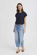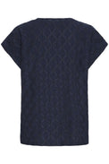 T-shirt à manches cap. Encolure ronde. Coupe ample. Tissu soyeux ajouré et extensible. Motif abstrait.