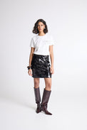 T-shirt à manches courtes. Encolure ronde. Coupe droite. Boucle en petites pierres amovible. Jersey extensible. Peut rétrécir au lavage.