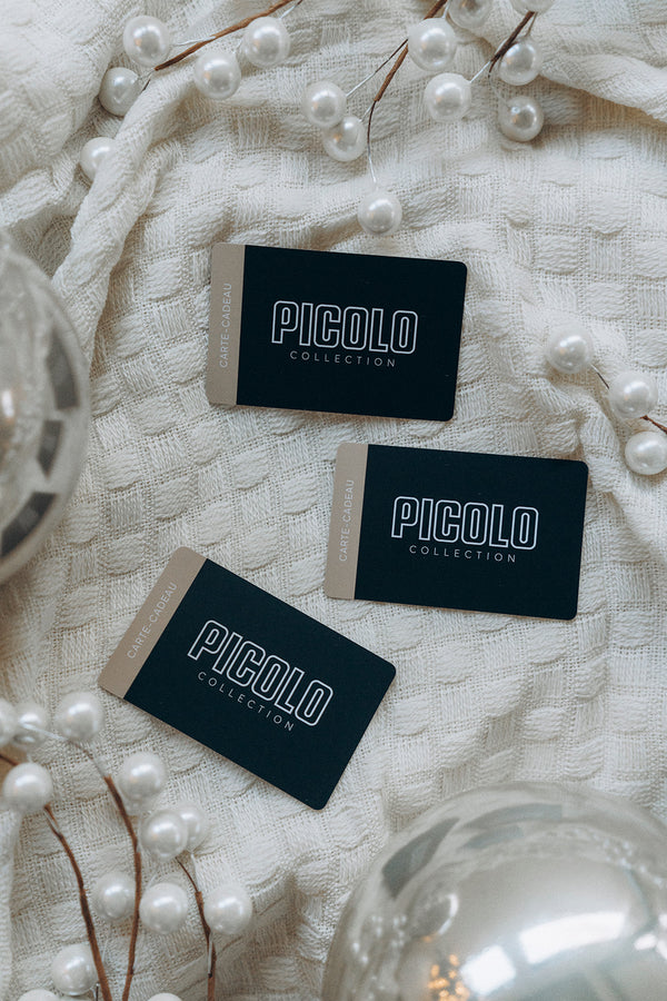 Pour toutes demandes concernant les cartes-cadeaux, vous pouvez nous rejoindre par téléphone au 418-228-9109 ou encore par courriel à l'adresse commandes.picolo@outlook.com.