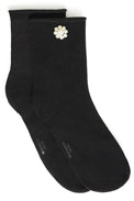 Chaussettes à bordure roulée. Insertion de perles en forme de fleur.