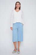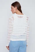 Cardigan à manches longues. Encolure en «V» à bordure roulée. Tricot ajouré offrant un léger relief. Boutons ton sur ton. Aussi disponible en marine.