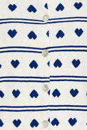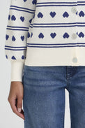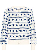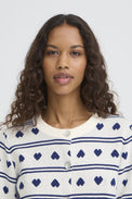 Cardigan à manches longues. Encolure ronde. Bordure côtelée unie au col, au bas et au bout des manches. Boutons à effet lustré. Tricot doux et extensible. Rayures horizontales composées de lignes et de cœurs.