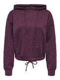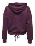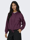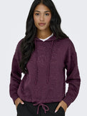 Chandail en coton ouaté à manches longues. Capuchon avec lacet. Coupe ample. Lacet à la taille pour cintrer. Tissu doux et extensible. Broderie en forme de tourbillon ton sur ton.