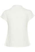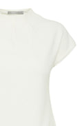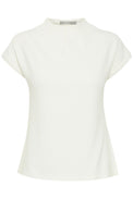 Chandail à manches cap. Col montant avec plis devant. Tissu extensible ayant un léger relief devant et uni derrière.