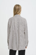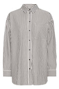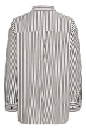 Chemisier à manches longues. Col classique. Boutons noirs. Coupe «oversize». Poche plaquée. Tissu non-extensible à effet froissé. Rayures verticales 2 tons.