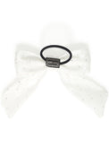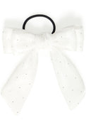 Boucle sur élastique avec insertion de petites pierres. Tissu soyeux offrant une légère brillance.