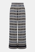 Sophistiqué avec une touche stylée, ce pantalon en tissu recyclé présente un imprimé audacieux de bordure en chaîne, des poches latérales et une ceinture élastique froncée confortable à l'arrière.
