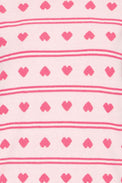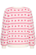 Pull à manches longues. Encolure ronde. Bordure côtelée unie au col, au bas et au bout des manches. Tricot doux et extensible. Rayures horizontales composées de lignes et de cœurs.