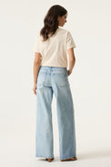 T-shirt à manches courtes. Encolure ronde. Graphique représentant une femme accroupie sur un fond brillant. Écriture «Amore, Garcia». Tissu doux et extensible. Peut rétrécir au lavage.