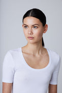 T-shirt ajusté à manches courtes. Encolure en «U». Tissu très doux et extensible.