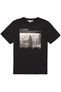 T-shirt à manches courtes. Encolure ronde. Graphique représentant une femme posant son regard sur la ville. Écriture présentant une version littéraire de la définition de «l'amore». Tissu extensible. Peut rétrécir au lavage.