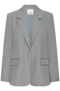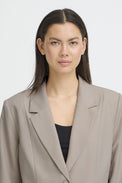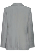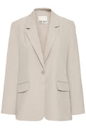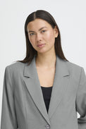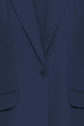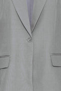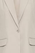 Veston à manches longues de coupe «oversize». Encolure classique. Épaulettes intégrées. Bouton ton sur ton. Fausses poches à rabat. Tissu non-extensible.